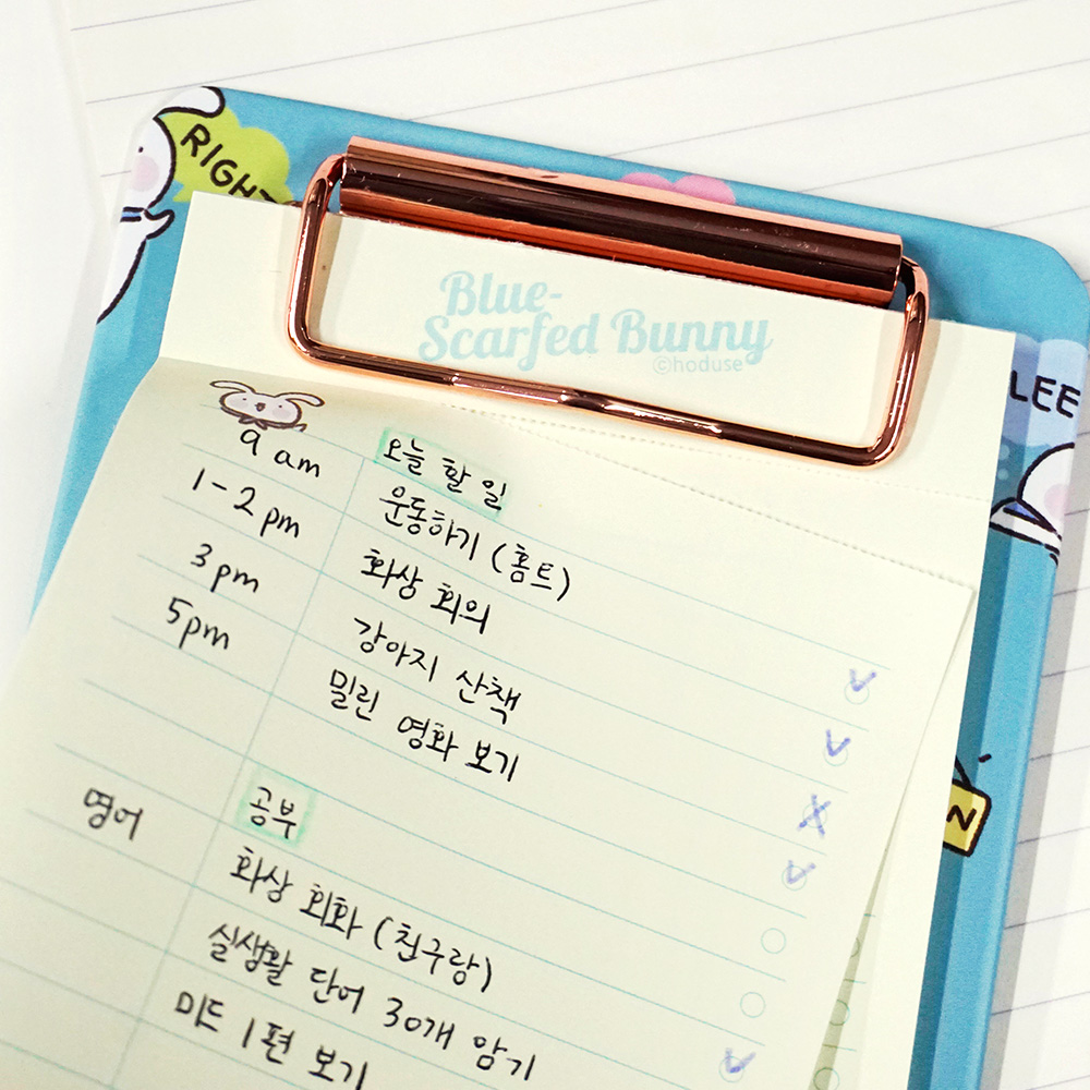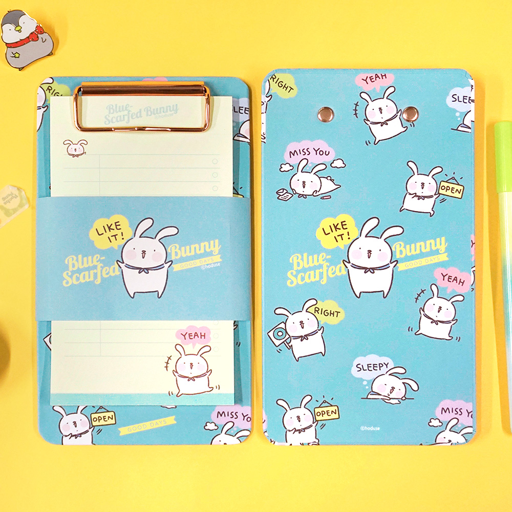 파란스카프 토끼 메모지 클립보드