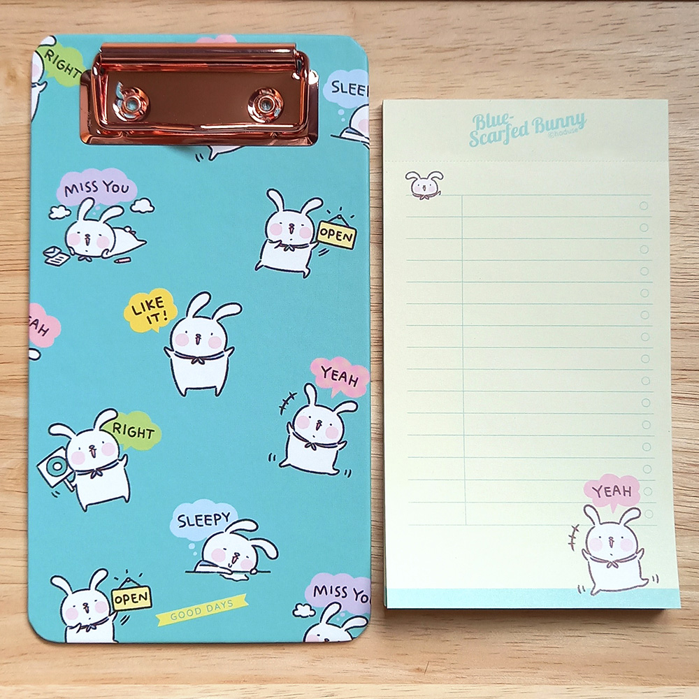 Blue-Scarfed Bunny Memo Pad Clipboard