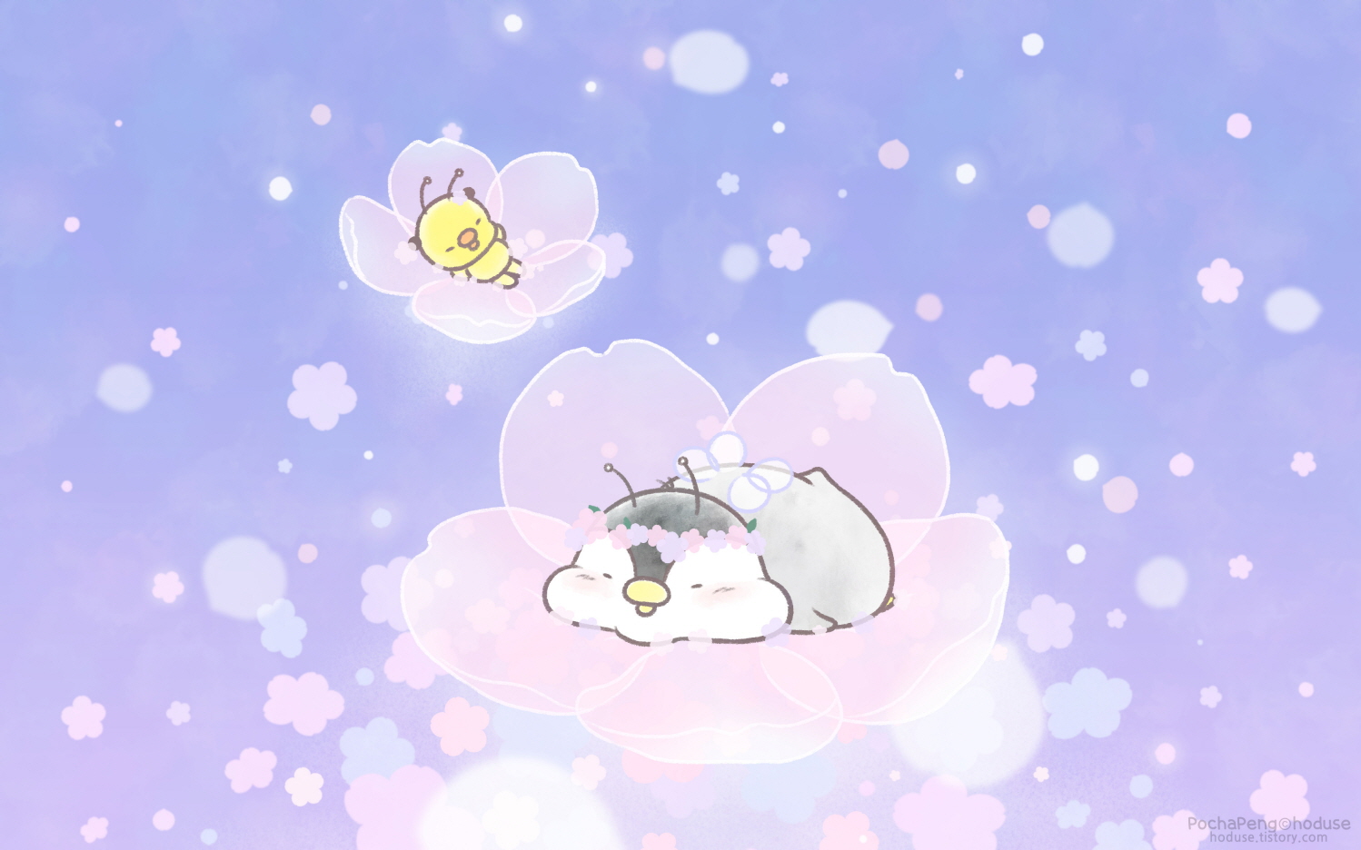 요정 펭귄은 밤하늘 둥둥 벚꽃을 타고~