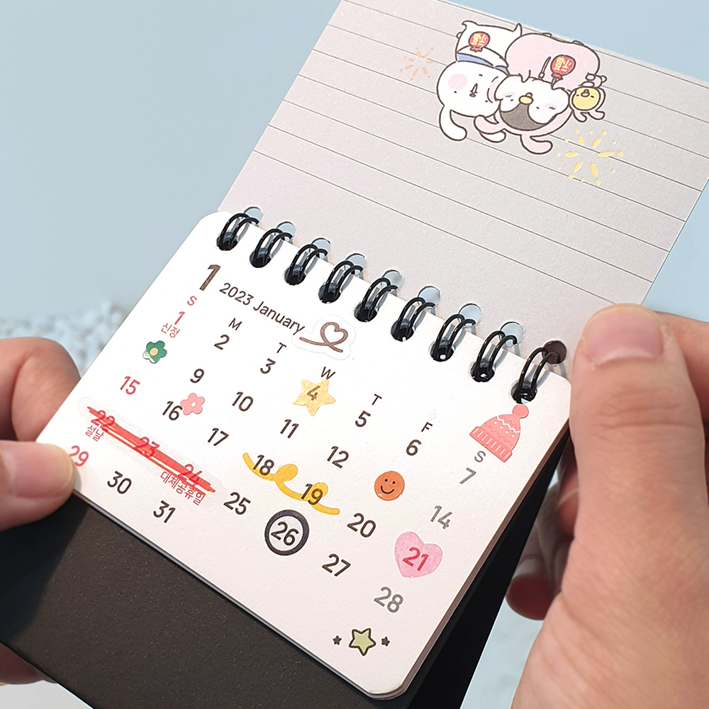 사무용으로도 어울리는 심플 모던한 디자인 노트형 캘린더로 뒷면에 노트가 있어 메모, 기록에 유용해요.